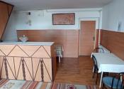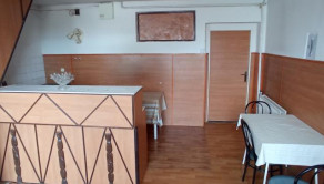 dve menšie miestnosti (v súčasnosti jedna využívaná ako kancelária), chodba, zadná technická miestnosť - kotolňa, sklad, sociálne zariadenie a menšia kúpeľňa.