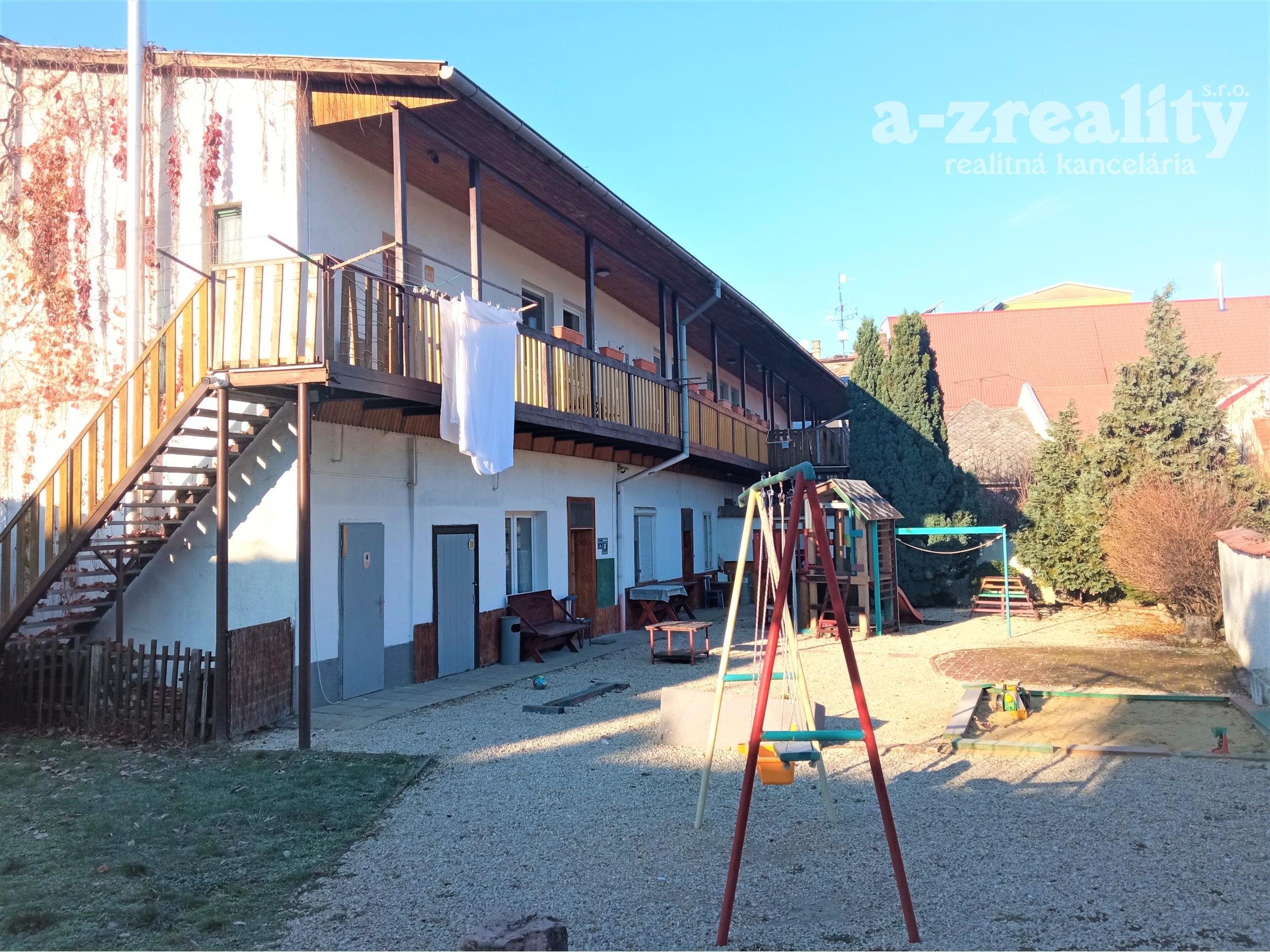 Veľká polyfunkčná budova : pozostáva z prízemia, poschodia a veľkých podzemných pivničných priestorov (3 x 200 m2).