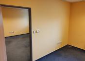 Veľké hliníkové okná zabezpečujú dostatok svetla, k dispozícii je nábytok z ostatných voľných kancelárií v budove.