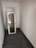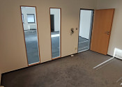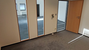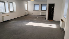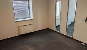 Dispozícia: jedna veľká kancelária, jedna menšia kancelária (serverovňa) a tretia miestnosť vhodná aj ako kancelárie vedúceho: presklené vnútorné okná smerujúce do veľkej kancelárie.