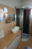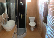 🔹 Kúpeľňa s moderným sprchovým kútom a samostatná toaleta.
