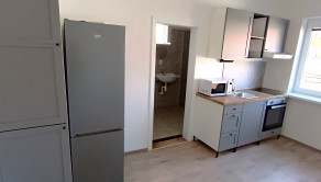 - v kuchyni je nová kuchynská linka so zabudovanou elektrickou rúrou, mikrovlnka a chladnička, v kúpeľni s toaletou je sprchovací kút, v technickej miestnosti je bojler na teplú vodu a miesto na pračku
