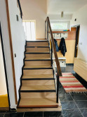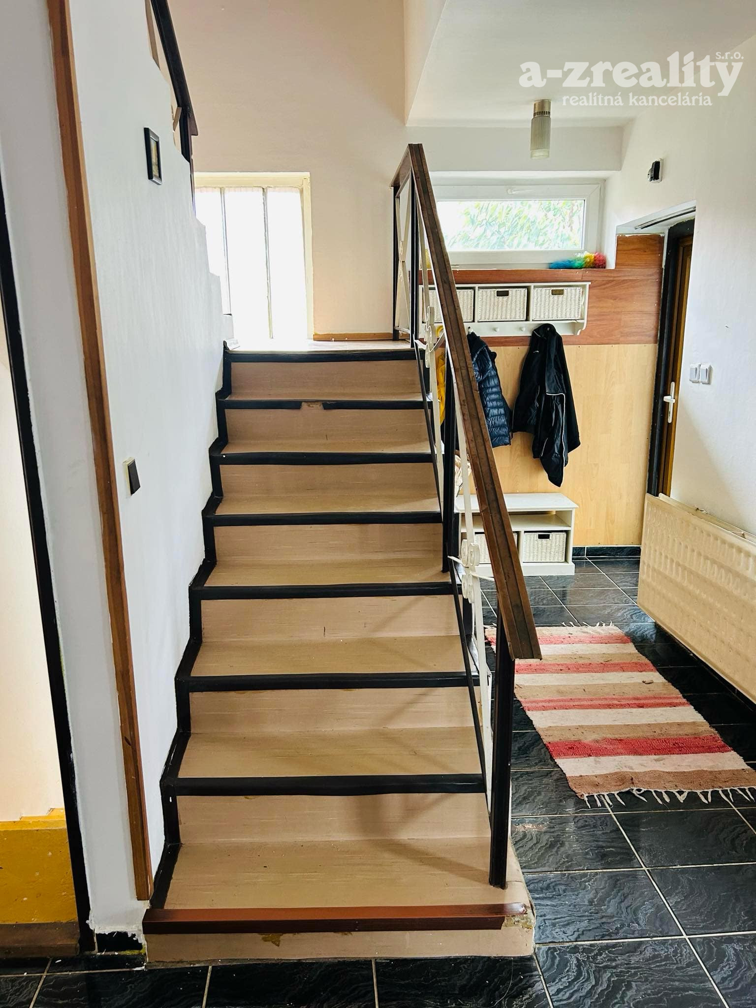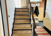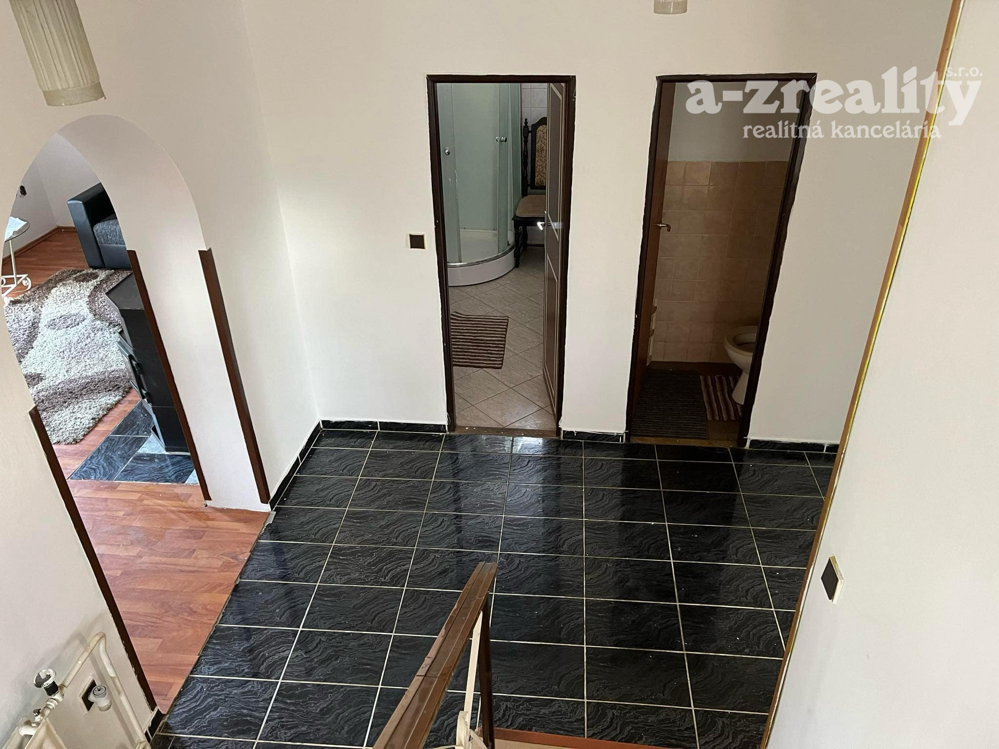 Prízemie: vstupná chodba so schodiskom,kuchyňa s jedálňou,obývačka s krbom a výstupom na balkón,kúpeľňa so sprchovým,samostatné WC kútom,špajza
