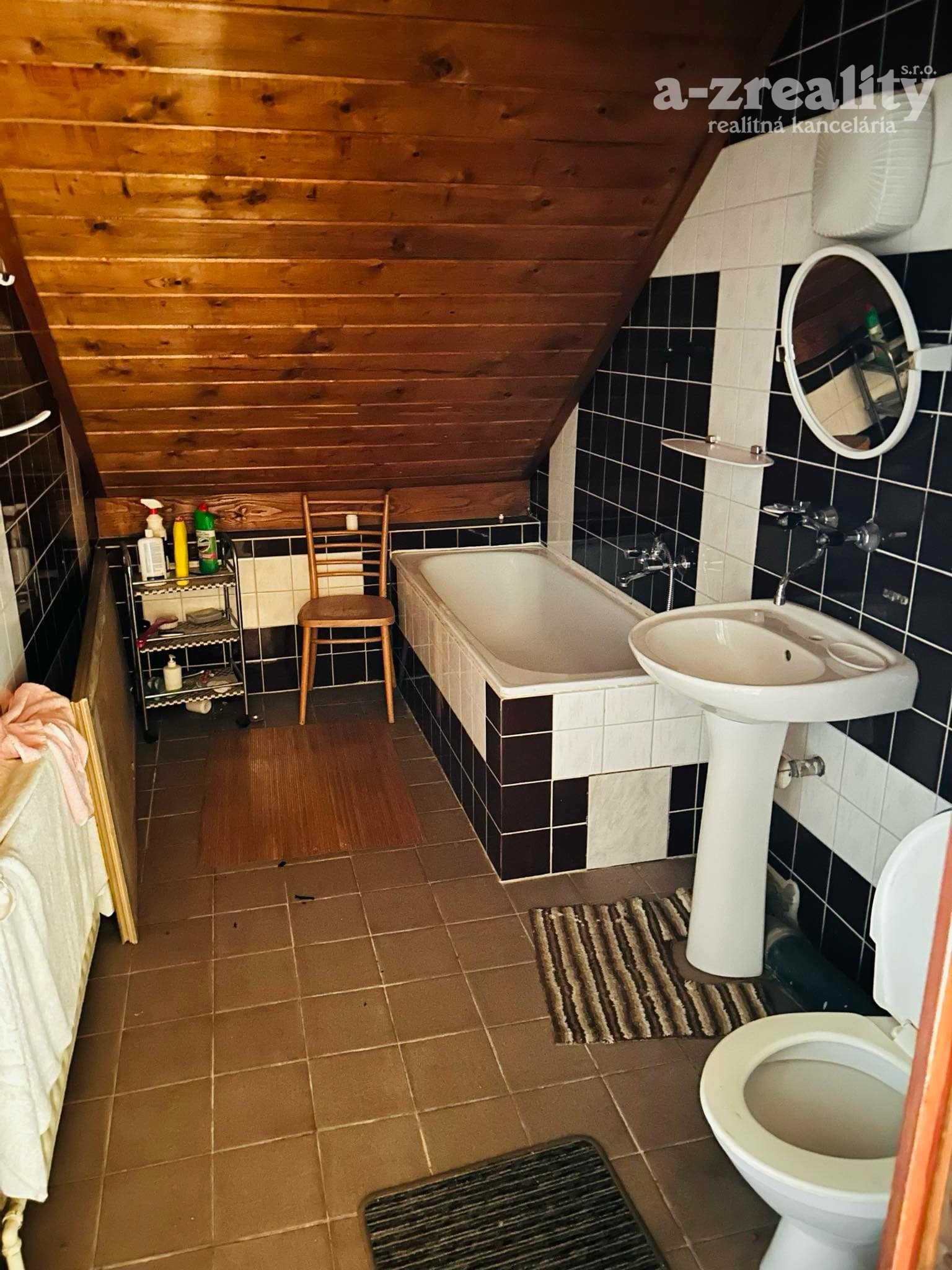Poschodie: 3 samostatné izby,kúpeľňa s vaňou a toaletou