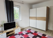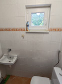 Vchodové dvere, balkónové dvere a okná sú plastové s trojsklom. Vnútorné žalúzie a  závesy zabezpečujú príjemné prostredie a súkromie vo vnútri domu.   Podlahy v izbách sú laminátové, v ostatných miestnostiach je keramická dlažba.