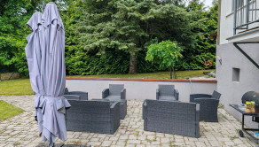 Na dvore je zámková dlažba, v zadnej časti dvora gumová dlažba.