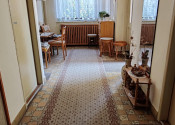 Podlahu v izbách tvoria pekné drevené parkety, v kuchyni je linoleum, v ostatných miestnostiach keramická dlažba. Okná sú pôvodné drevené. Dom je z veľkej časti podpivničený, v pivnici je vytvorený priestor na oddych a posedenie.
