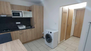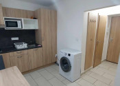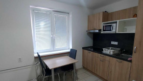 Zariadenie: kuchyňa- kuchynská linka,varná doska s digestorom,mikrovlnka,chladnička s mrazničkou a pračka,stôl,stoličky