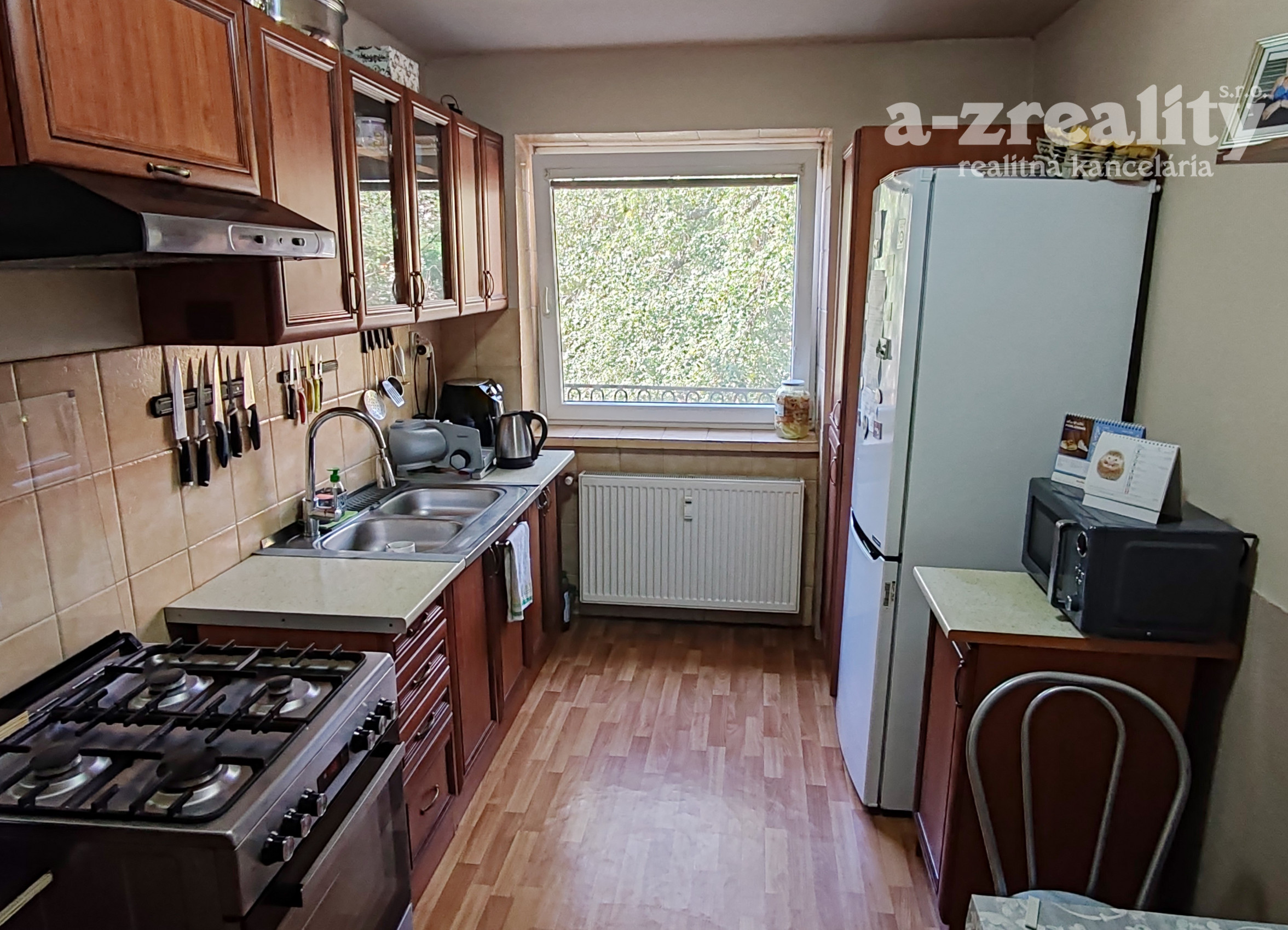 Súčasťou vybavenia ostáva veľká roldorová skriňa na chodbe a kuchynská linka.