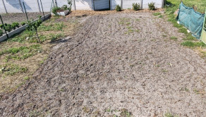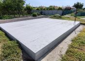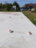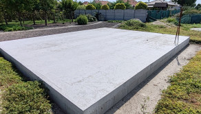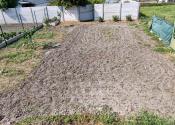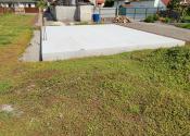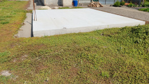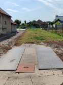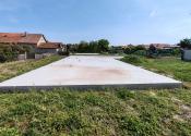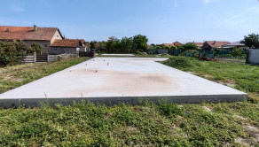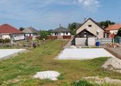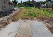 Prístup z ulice na vlastnú prístupovú cestu, pripravená betónová základová doska pre rodinný dom a samostatnú garáž, ako aj záhrada za budúcim domom.