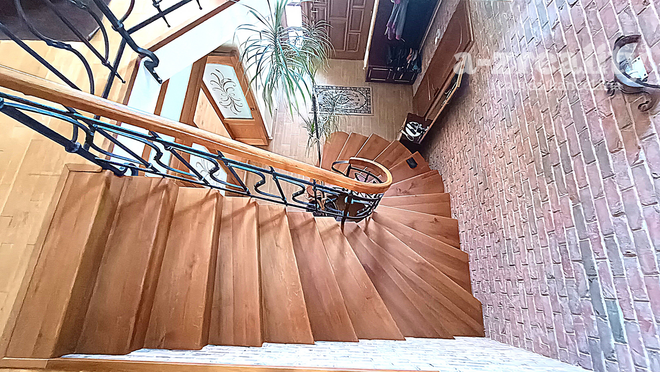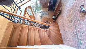 Prémiové materiály – okná, dvere, schodisko a zárubne z exotického dreva Meranti, kované zábradlie od umeleckého majstra.