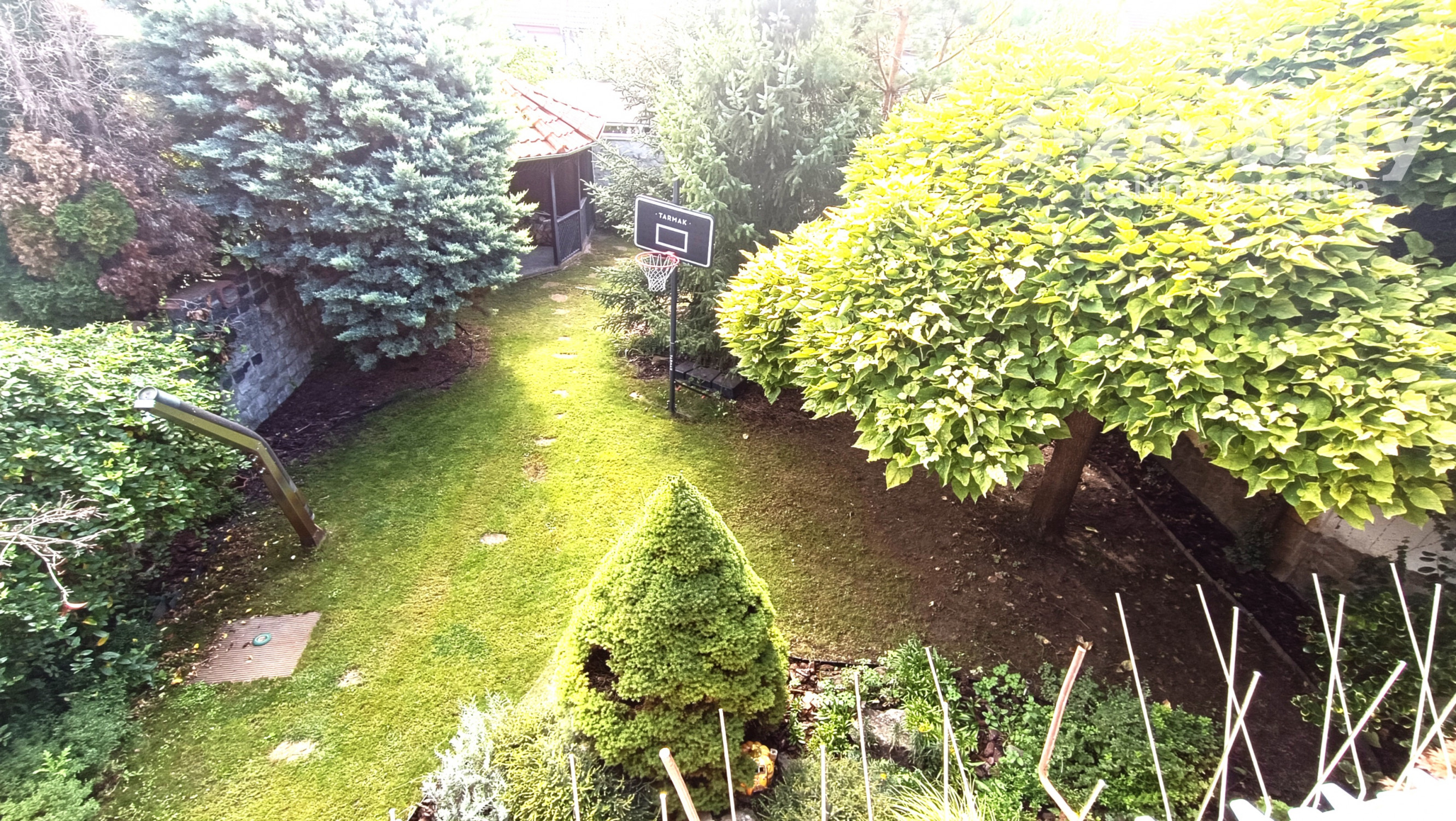 Na slnečnej južnej strane domu vás čaká okrasná záhrada s vodopádom, upraveným trávnikom, stromami a kríkmi. Samozrejmosťou je priestor na grilovanie či opekanie, pitná voda priamo v záhrade a automatické zavlažovanie zo studne.