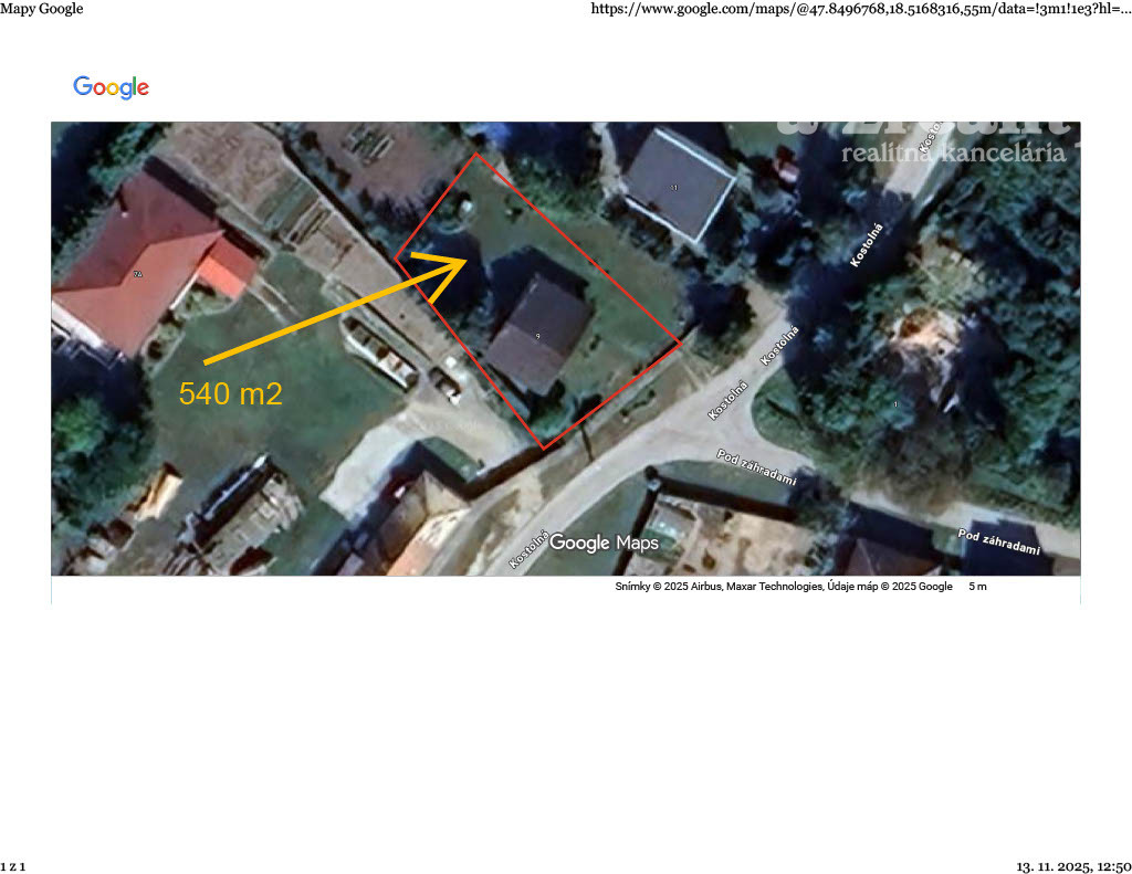 Dom sa nachádza neďaleko centra obce na pozemku o výmere 540 m² – tichá ulica, dostupná občianska vybavenosť, pohodlný prístup.