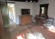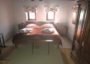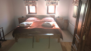 ďalšia izba je spálňa s typyckými malými oknami, zariadená veľkou posteľou a príslušným nábytkom