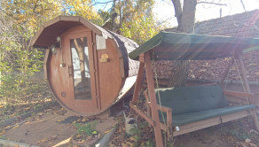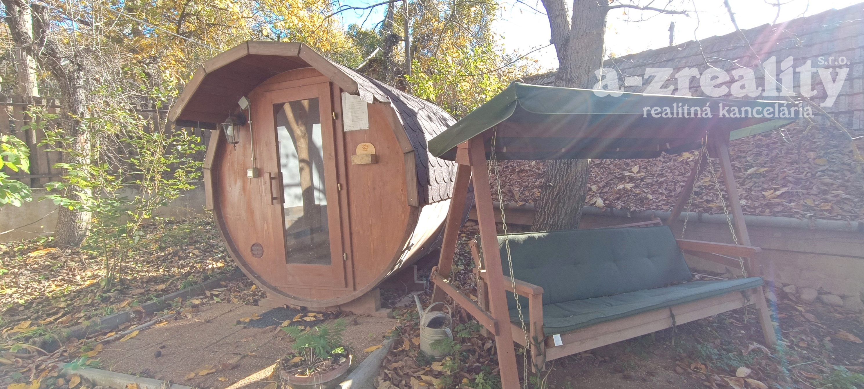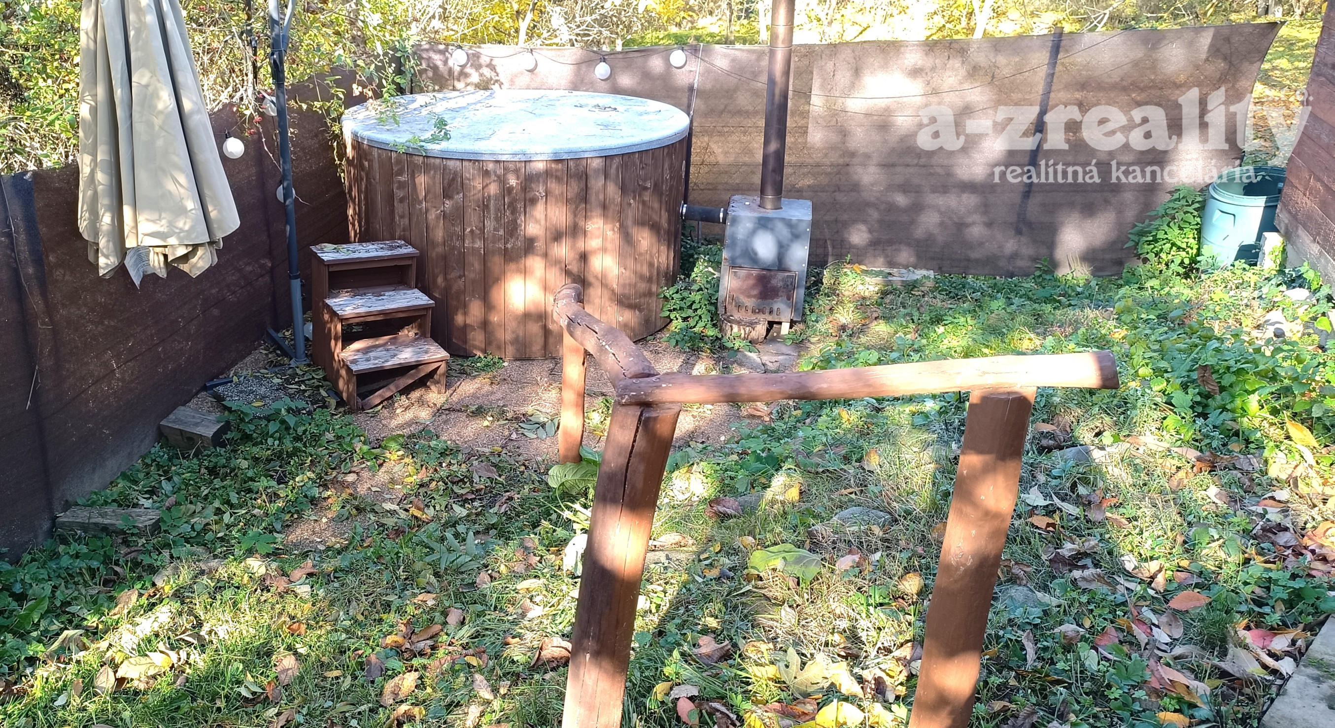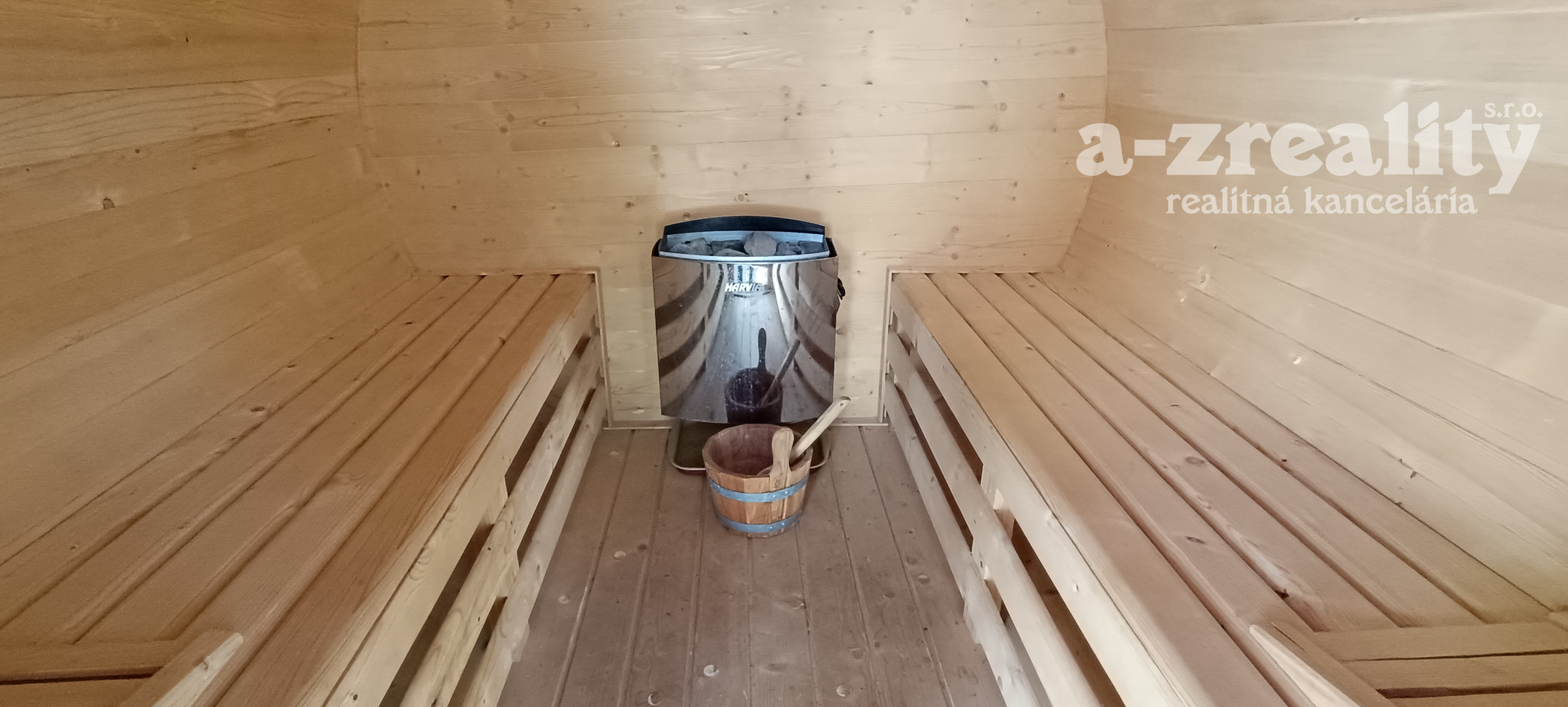 - okolie domu je oplotené, poskytuje súkromie - nachádzajú sa tu parkovacie miesta, vonkajšie posedenie, záhradný gril, terasa s krásnym výhľadom, fínska sauna, kaďa s možnosťou ohrevu vody, šopa pod terasou a suchá toaleta