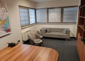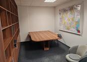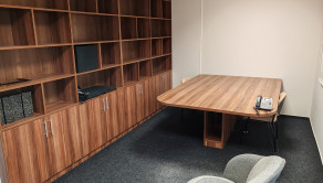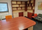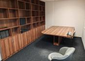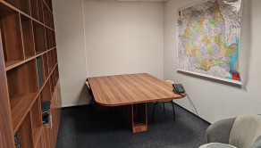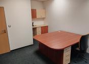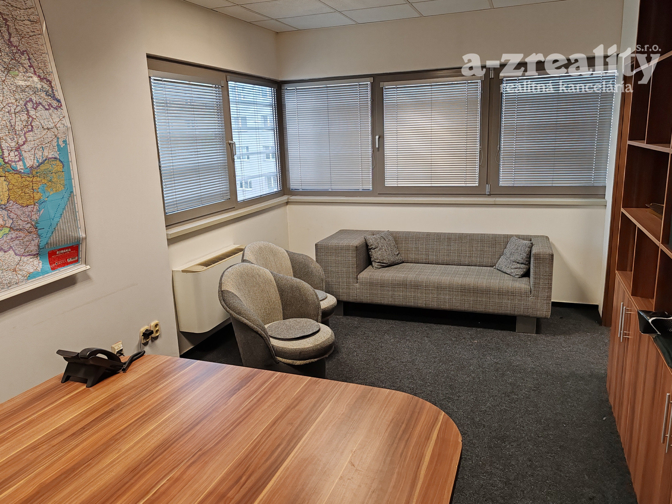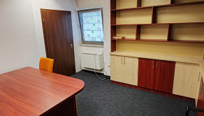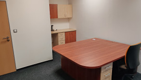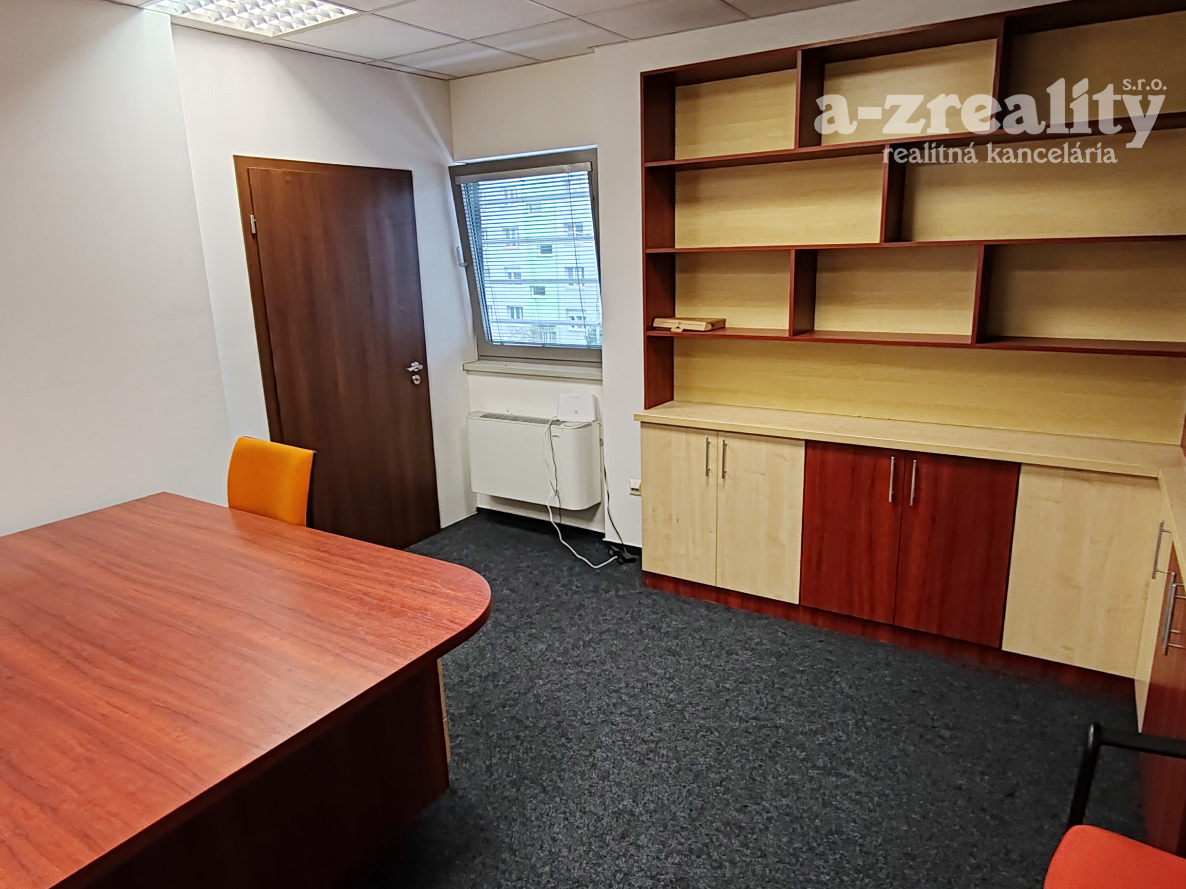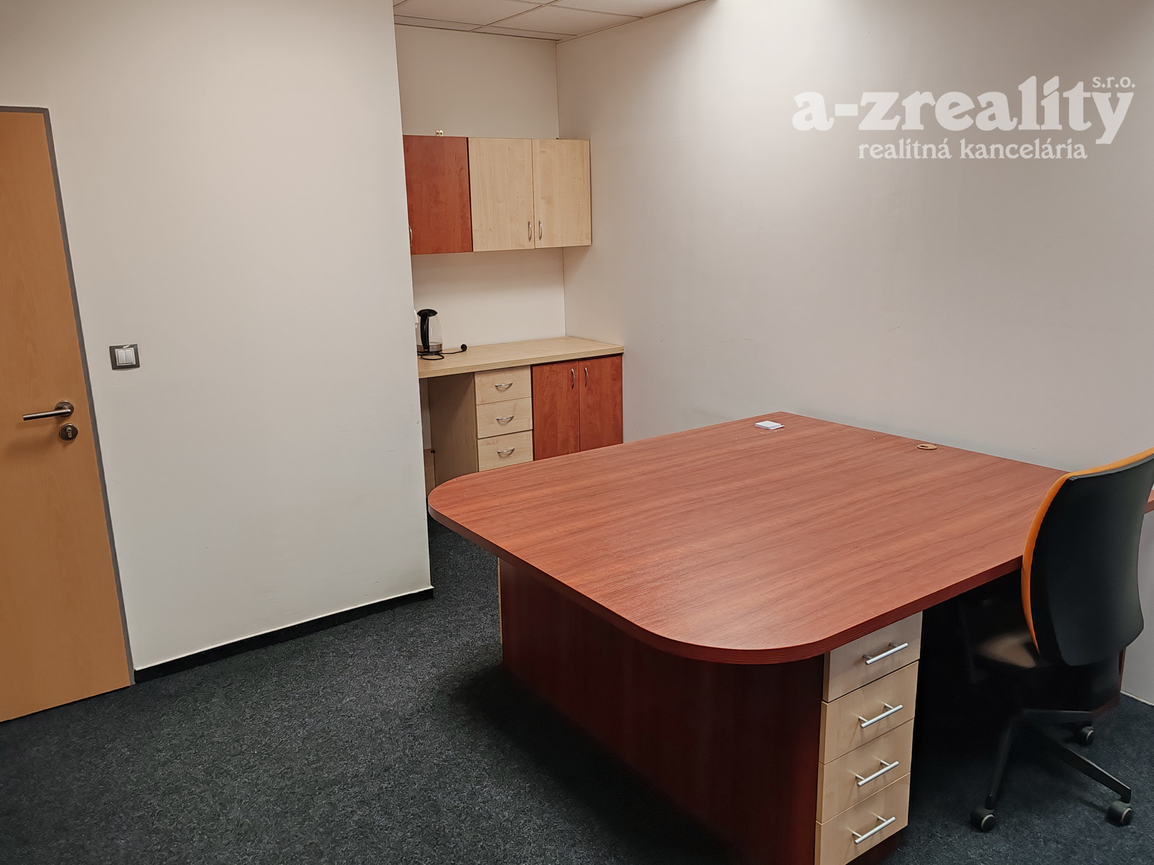 Dispozícia: zariadená rožná kancelária s pekným výhľadom, konferenčným stolom, policovými regálmi a gaučom. V druhej zariadenej kancelárii je okrem stola, kancelárskych stoličiek a skríň s poličkami aj menšia kuchynská linka.