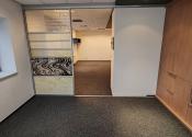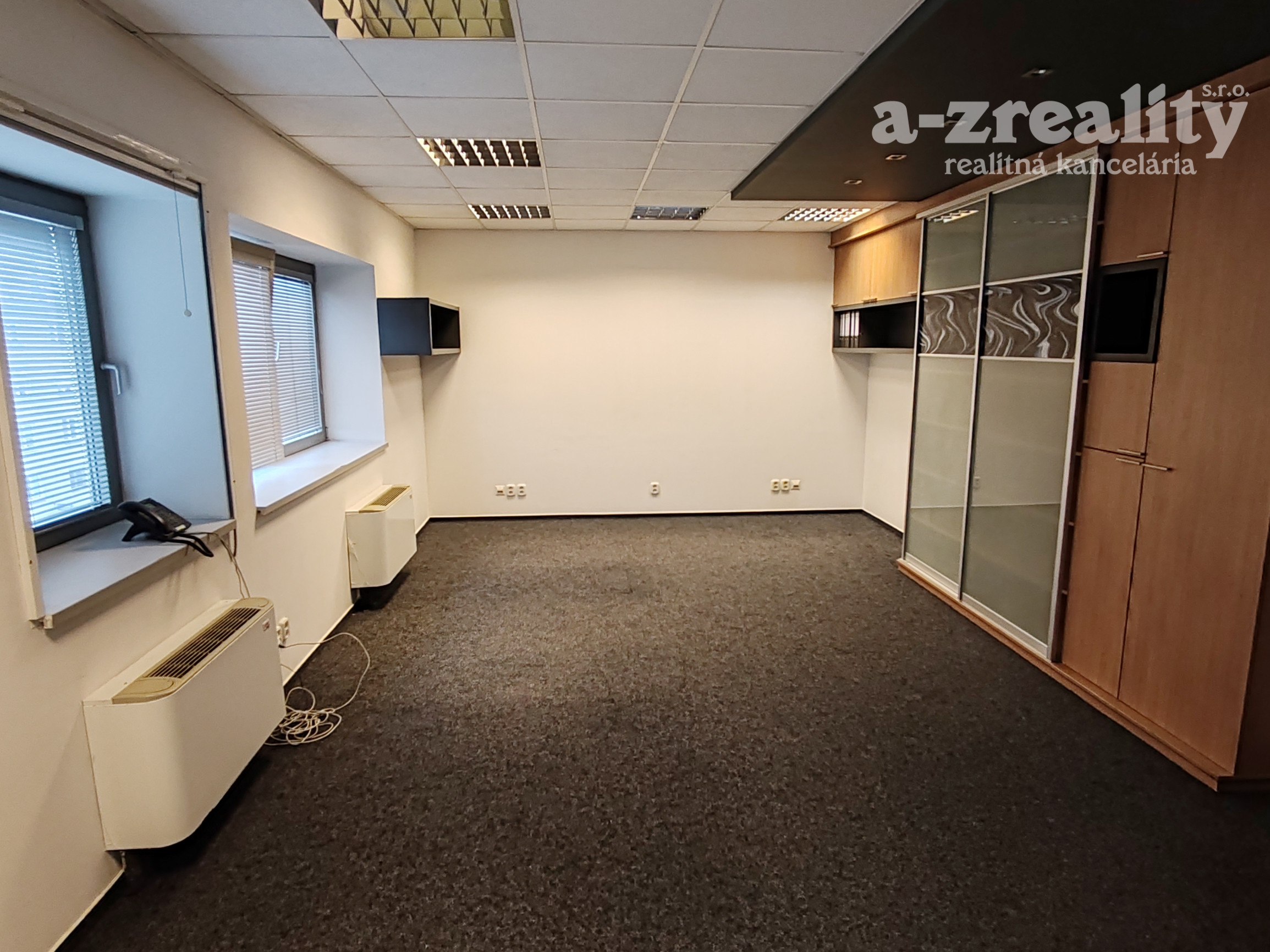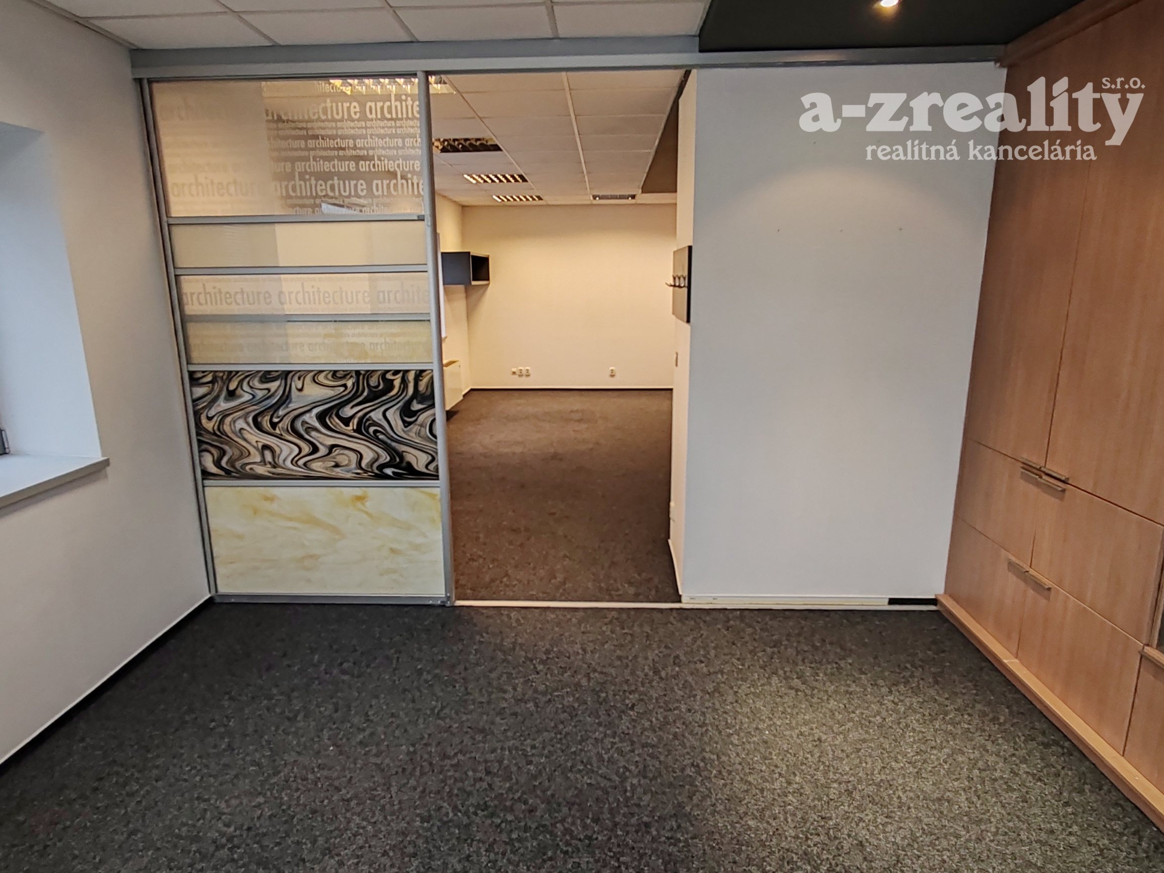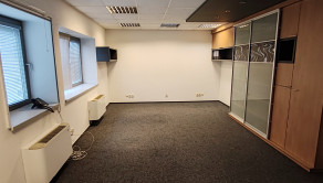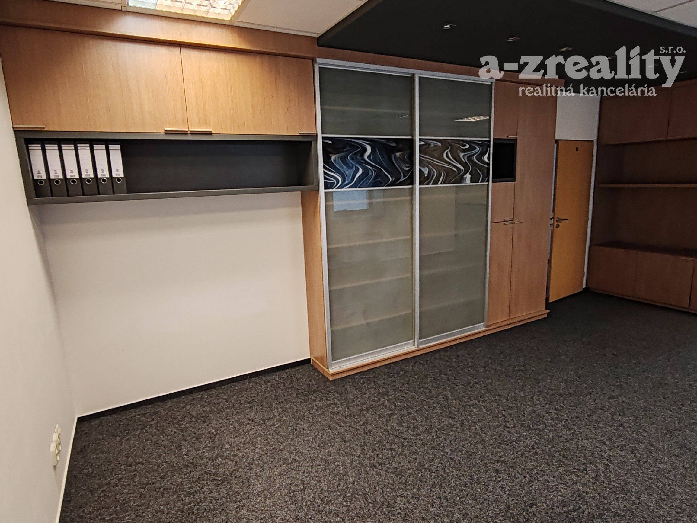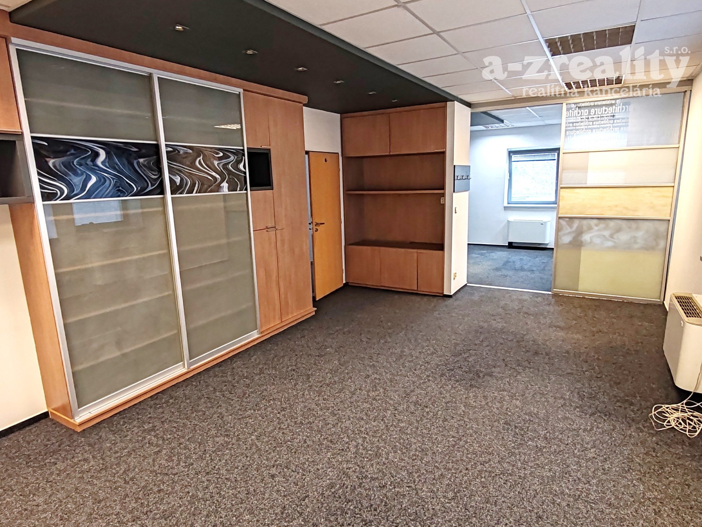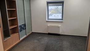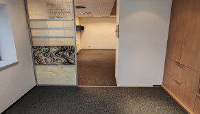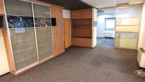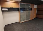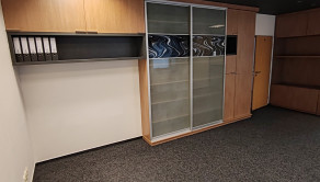Dispozícia: kancelária s pekným výhľadom a nábytkom so štýlovým ozdobným sklom, regálovými policami a posuvnou skriňou. V druhej kancelárii je tiež vkusný štýlový nábytok pozostávajúci z skrine s posuvnými dverami a skrine s policami na spisy.