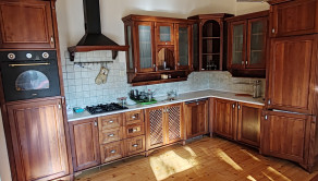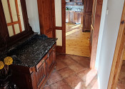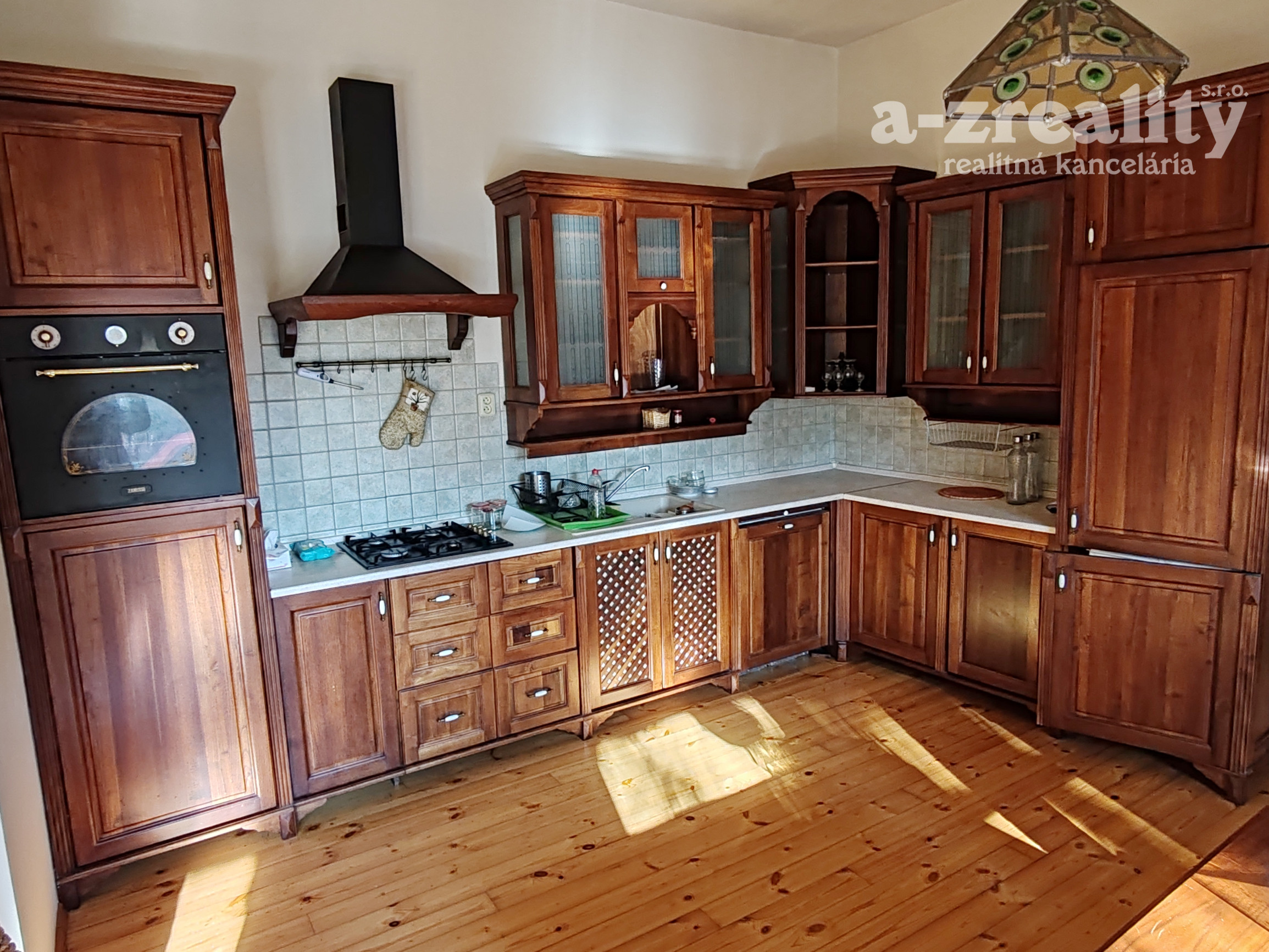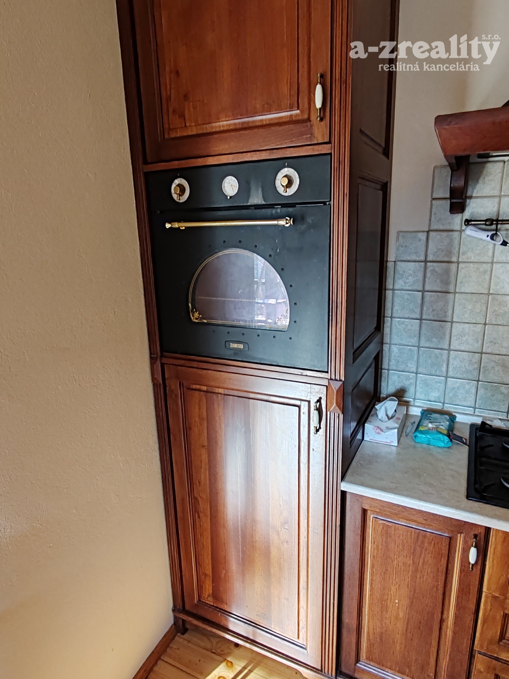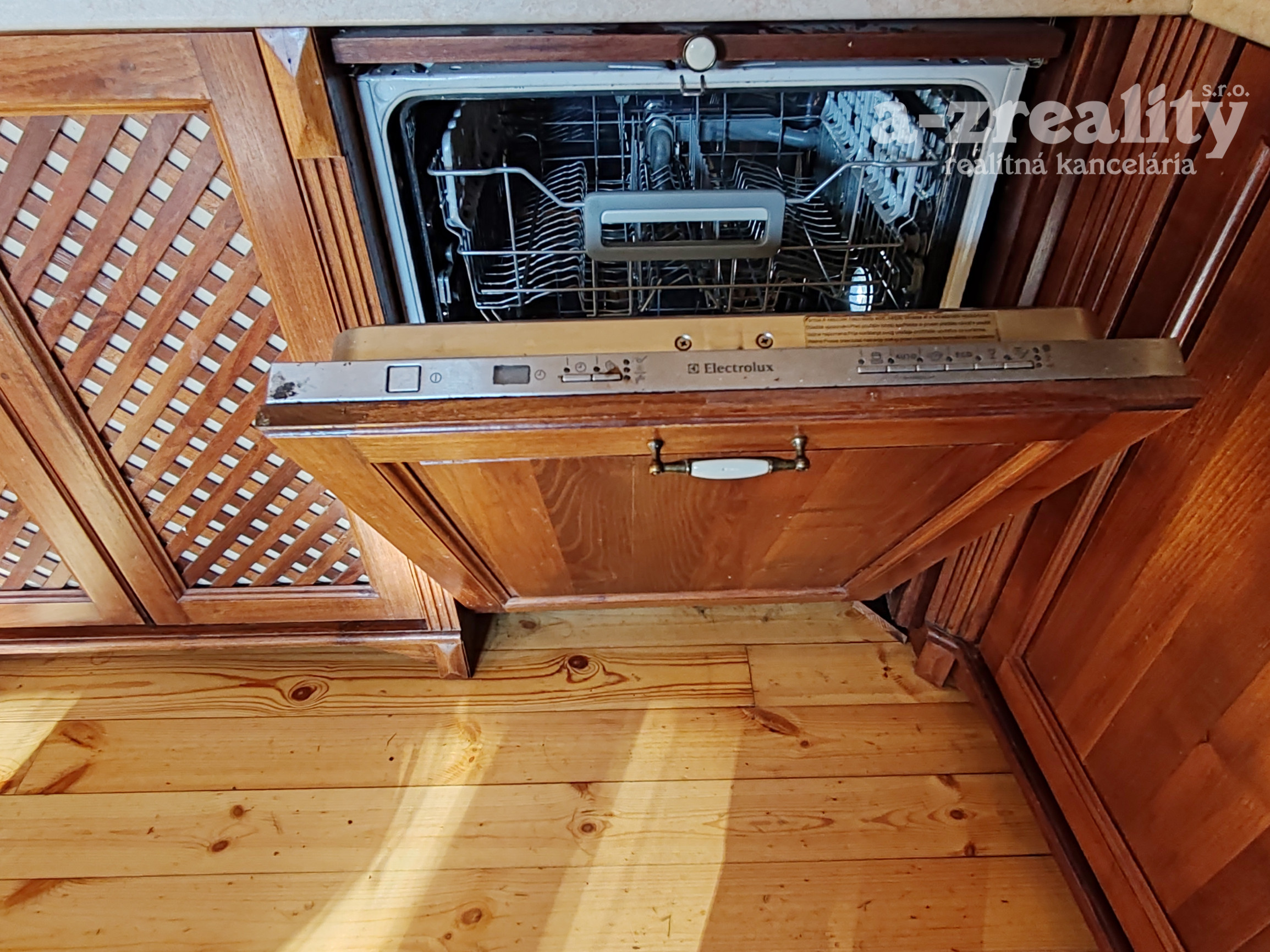V kuchyni je pekná veľká kuchynská linka v rustikálnom štýle so zabudovanými spotrebičmi vrátane umývačky riadku a chladničky. Časť nábytku na fotkách môže, no nemusí byť súčasťou vybavenie pre nového nájomníka.