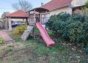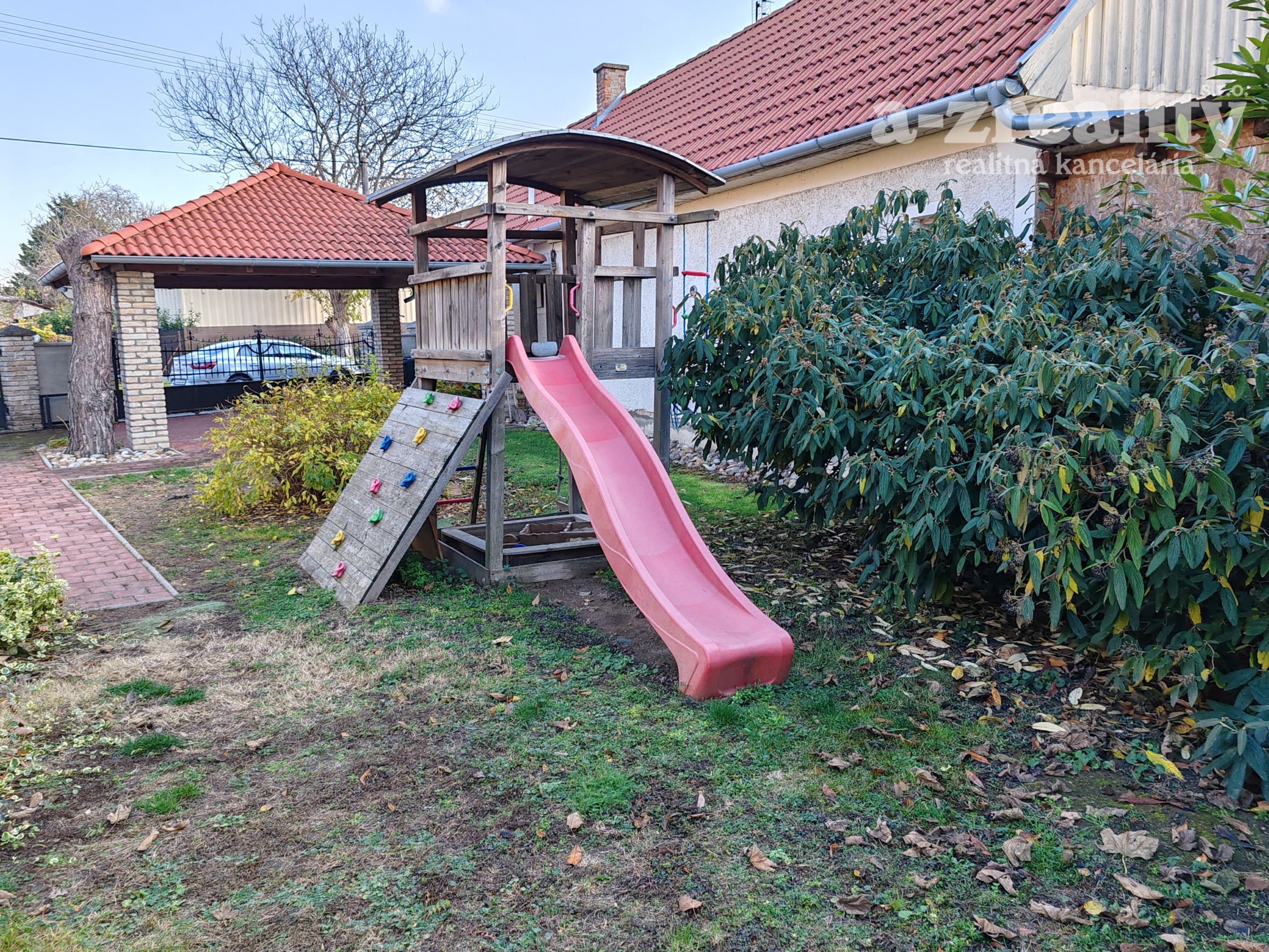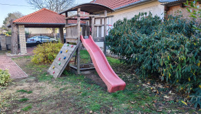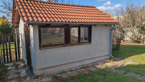 Za domom je menšia hospodárska budova využívaná ako sklad. Na dvore je tiež detská preliezka so šmýkačkou a veľký prístrešok pre auto.