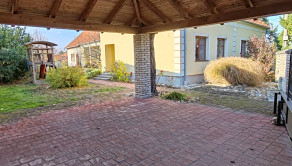 Vstup do dvora je možný cez veľkú posuvnú bránu vedúcu pod prístrešok alebo menšiu kovanú bránku. Možnosť parkovania vo dvore aj pred domom je veľkou výhodou.