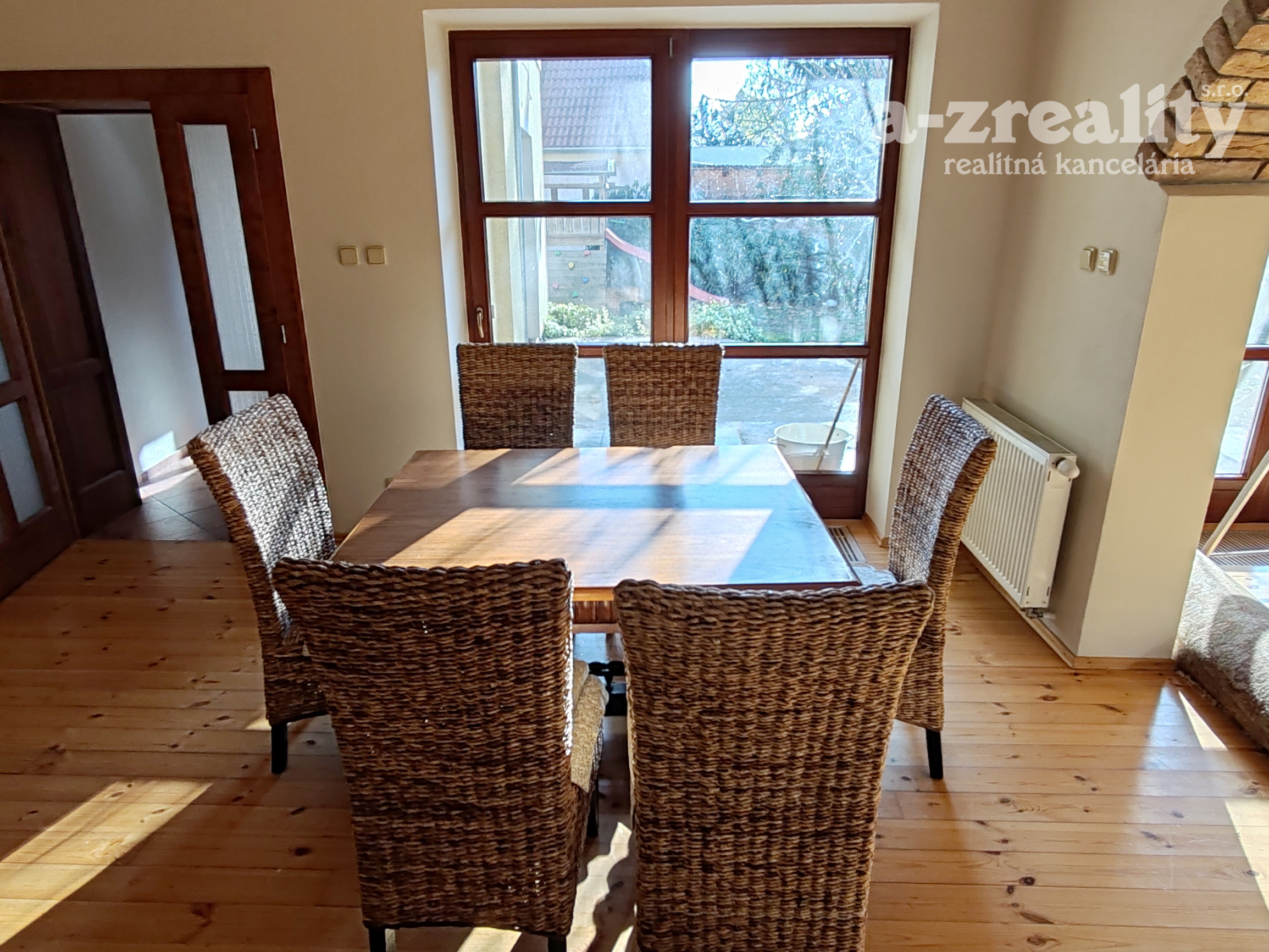 Vstupná prepojovacia chodba, veľká kuchyňa s jedálňou spojená s obývacou izbou z ktorej sa vychádza na peknú svetlú terasu, 3 ďalšie izby, 2 kúpeľne, špajza, technická miestnosť a samostatná toaleta.