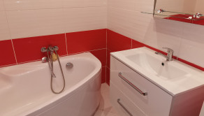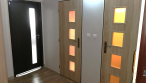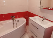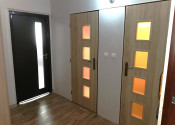 - v kúpeľni je rohová vaňa, v širokej vstupnej chodbe je šatníková skriňa