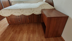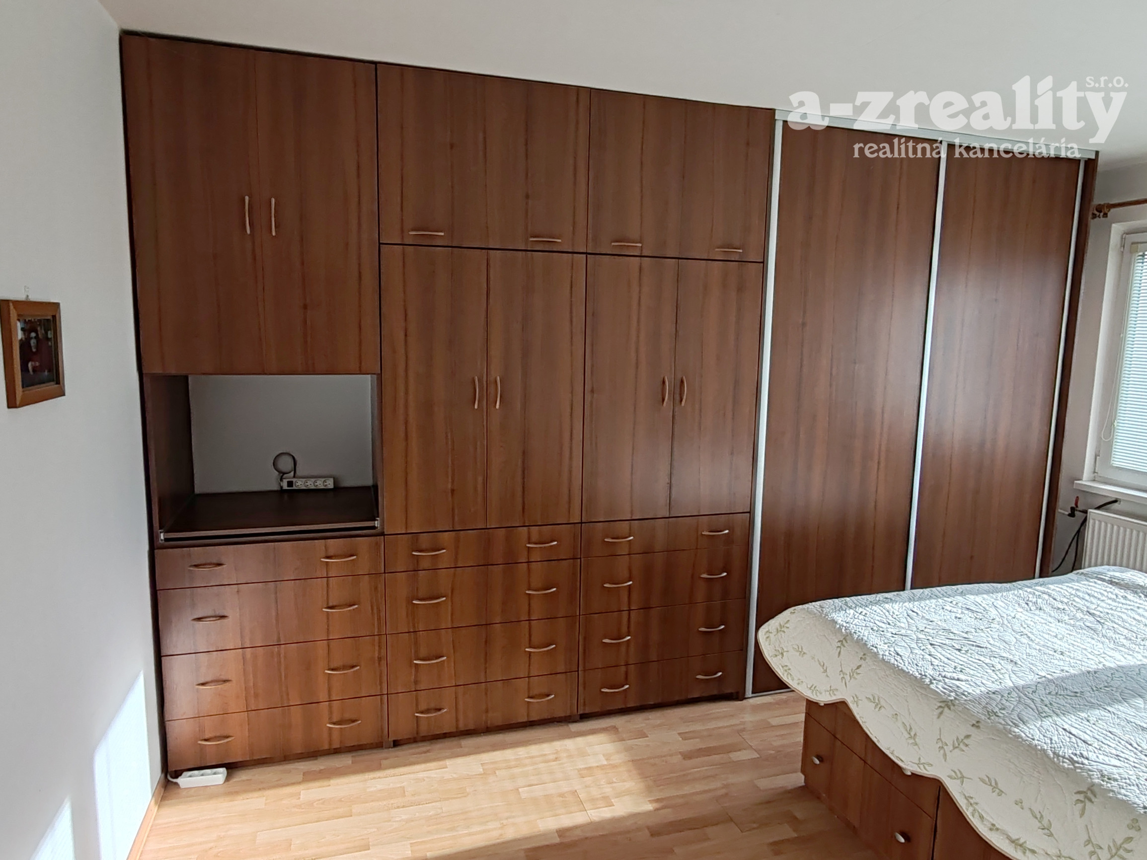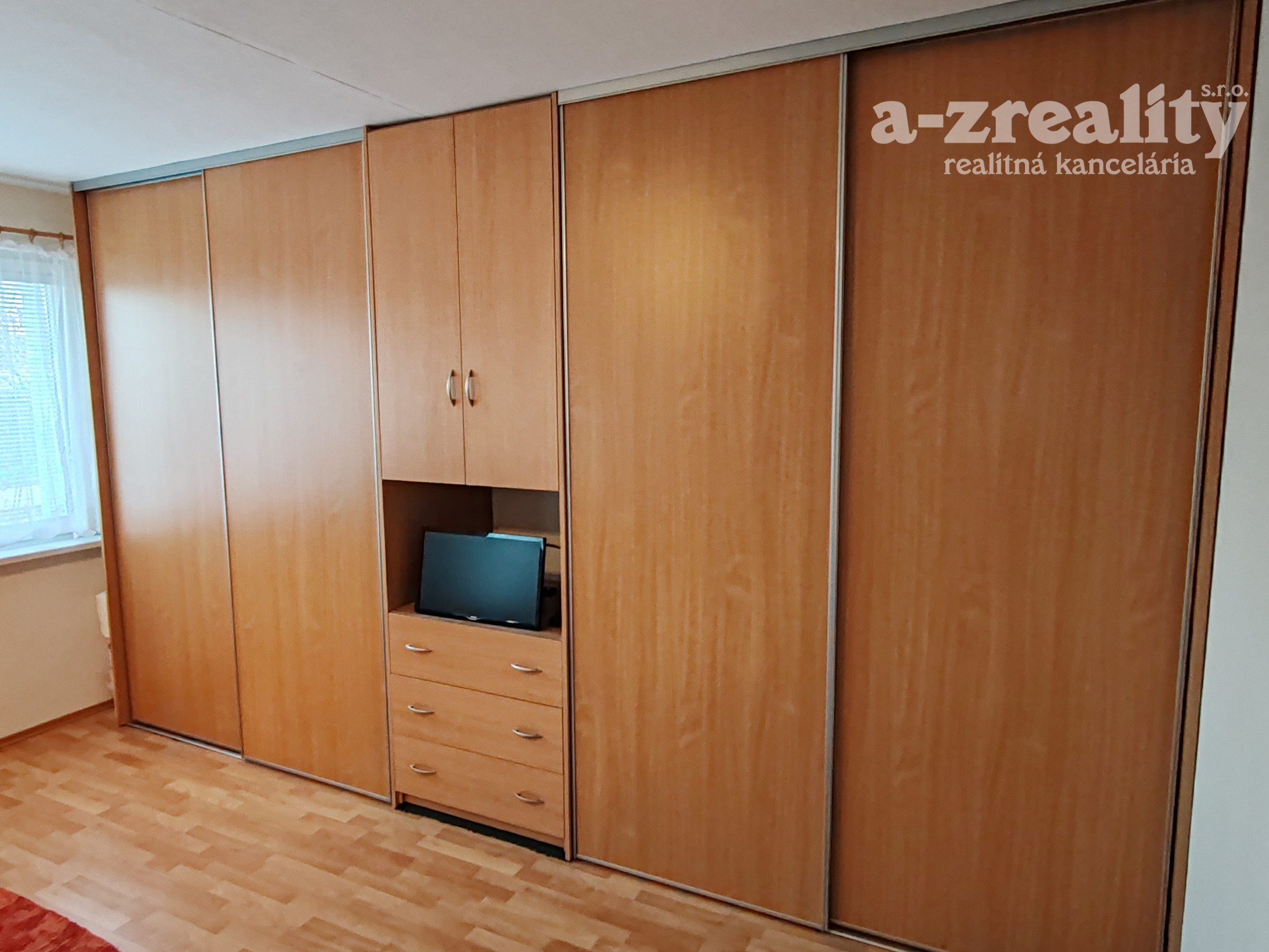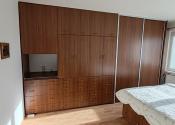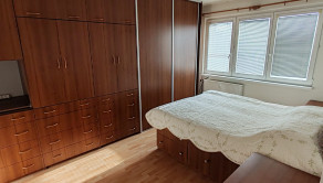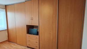 Súčasťou vybavenia ostávajú 2 veľké na mieru robené skrine v spálni a v obývačke ako aj kuchynská linka.
