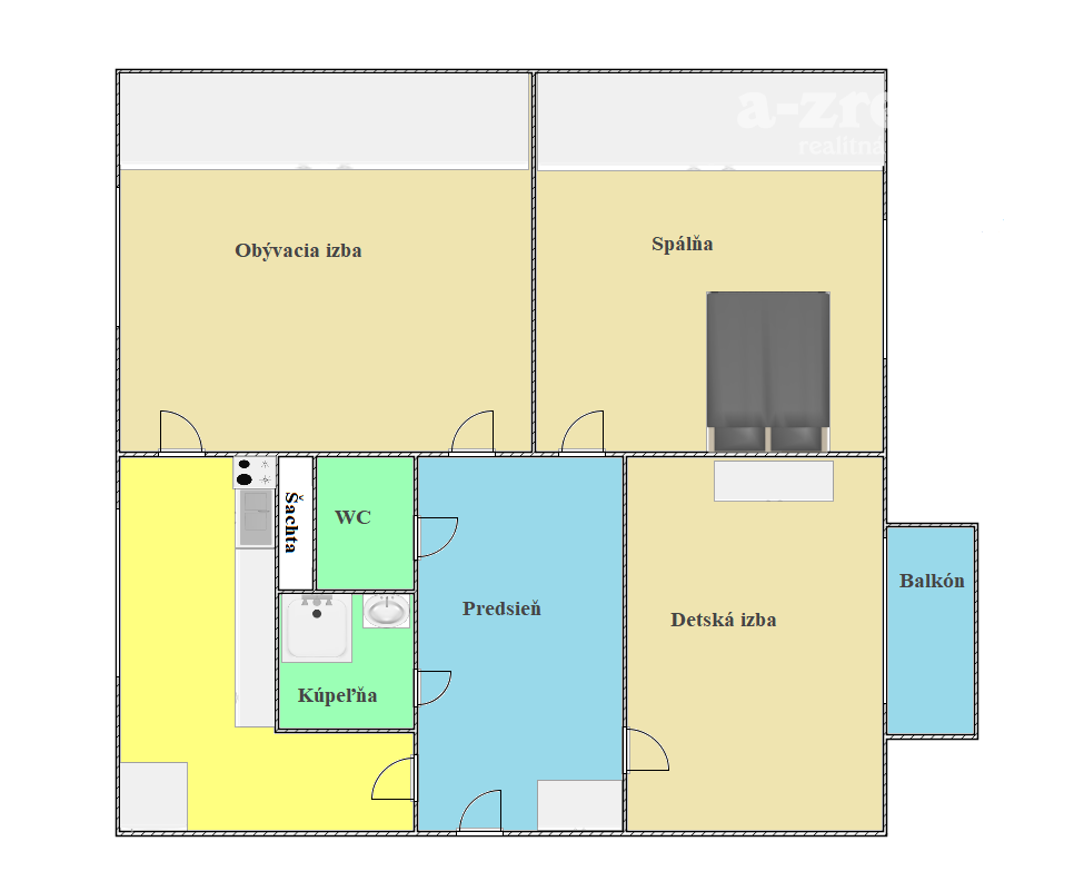 2 svetlé izby sú orientované na južnú stranu vďaka čomu je byt svetlý a poskytujú príjemné podmienky na bývanie.