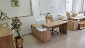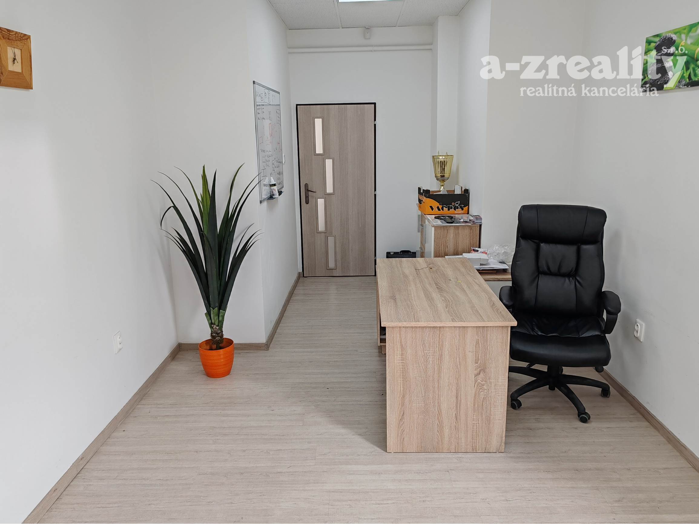 veľká miestnosť orientovaná smerom na ulicu, menšia zadná miestnosť (izba), kuchynka so spojovacou chodbou, kúpeľňa so sprchou, toaleta, menší sklad, technická miestnosť.