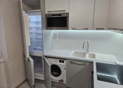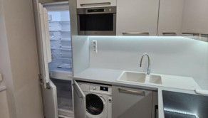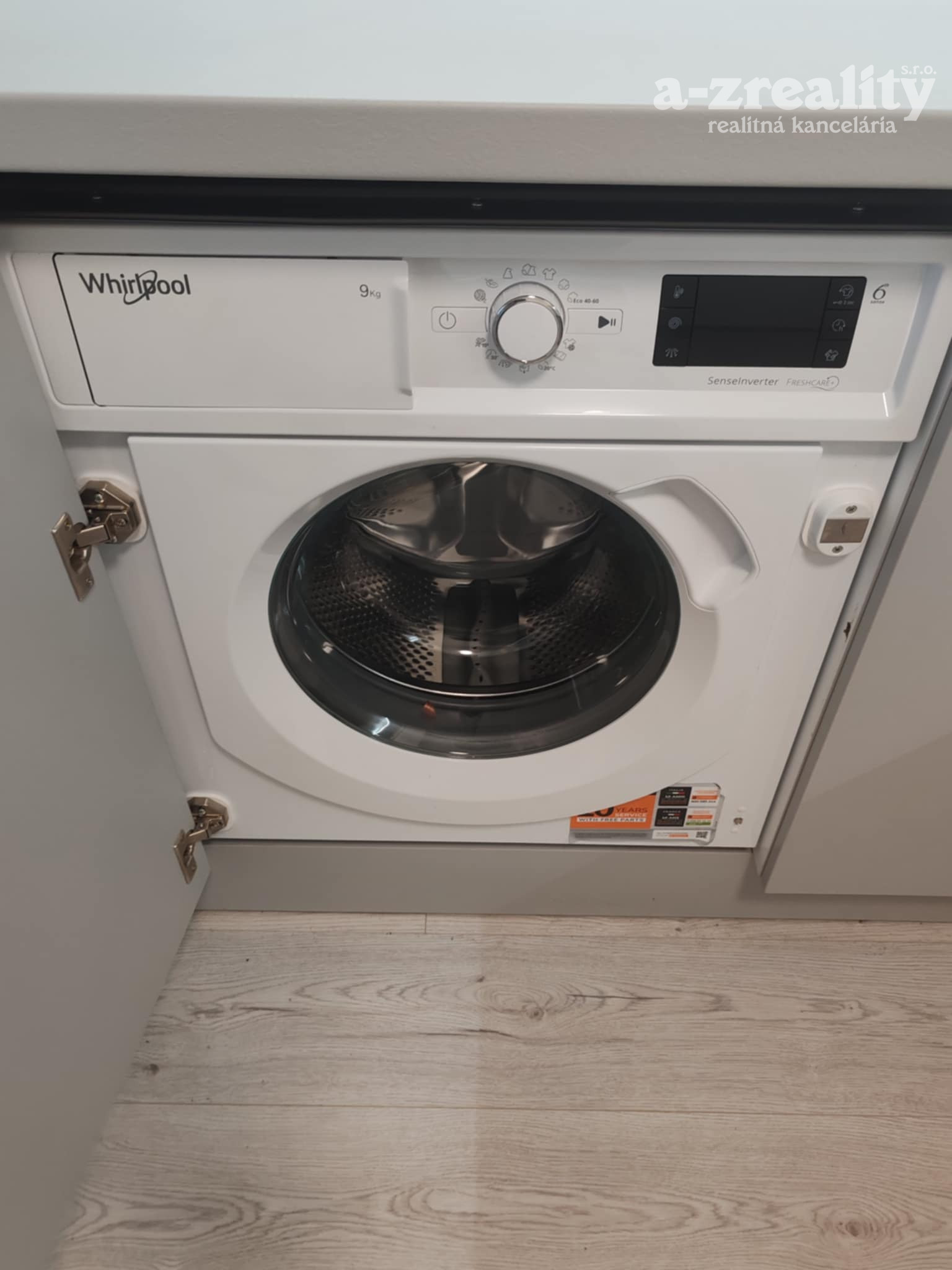 Byt je zariadený el. spotrebičmi: zabudovaná práčka, chladnička s mrazničkou, el. sporák s varnou doskou a mikrovlnka.