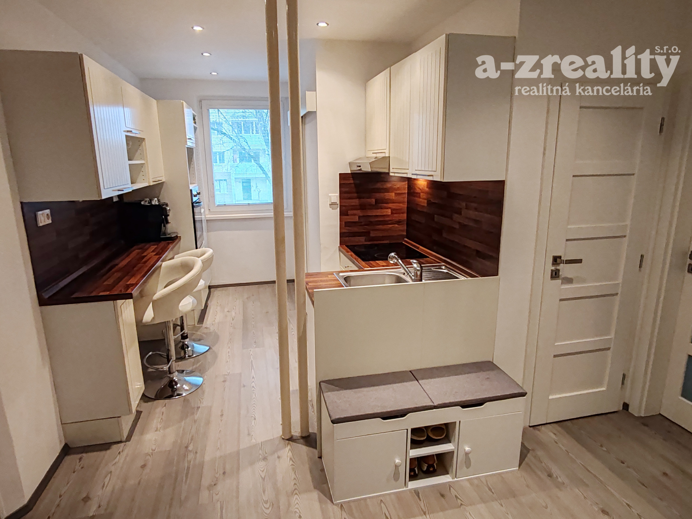Dispozícia: veľká predsieň spojená s kuchyňou, 2 samostatné svetlé izby, kúpeľňa so sprchovým boxom, samostatná toaleta.