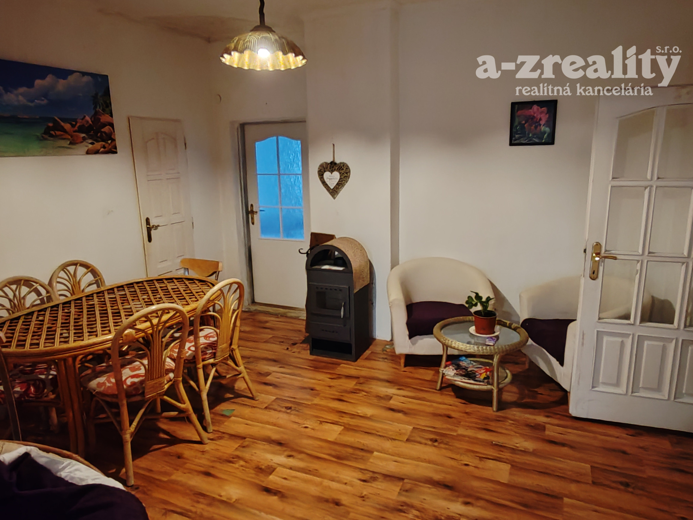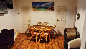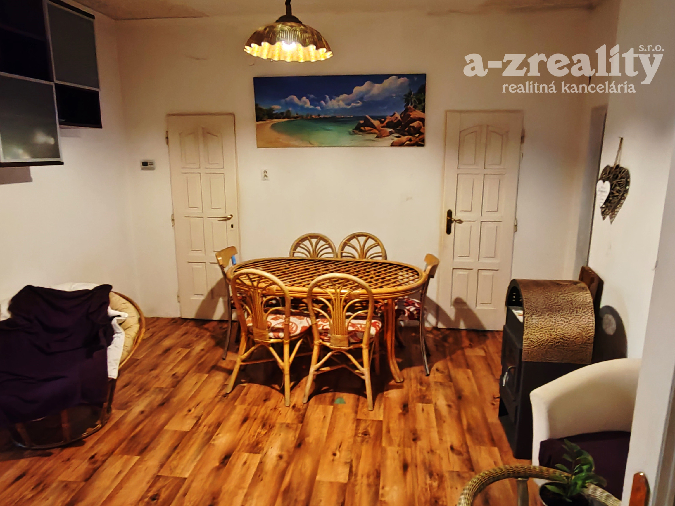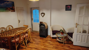 vstupná chodba, jedáleň, kuchyňa s výstupom na terasu, 3 samostatné nepriechodné izby, kúpeľňa s vaňou, samostatná toaleta, komora so vstupom na povalu, menšia miestnosť využívaná ako šatník