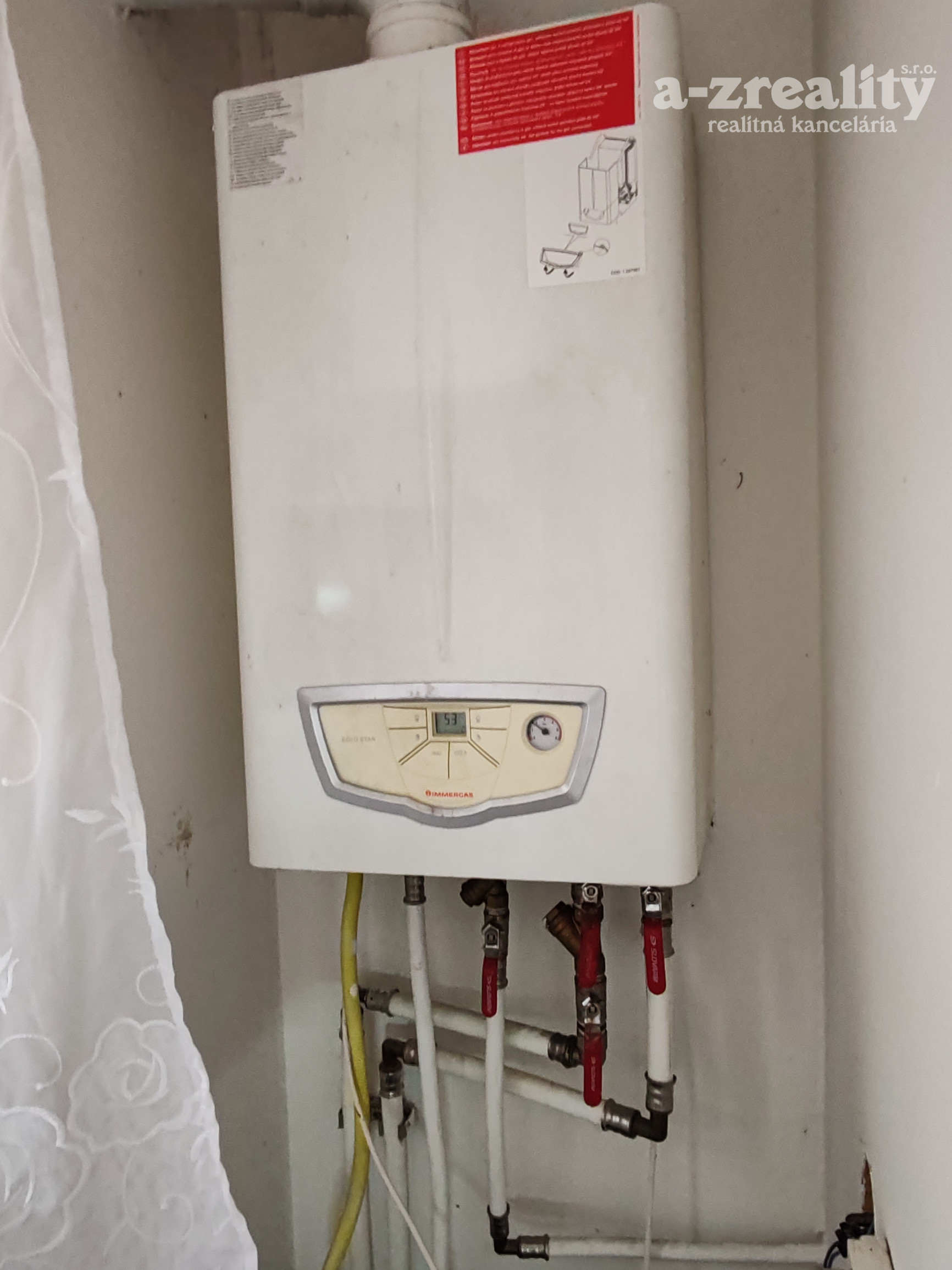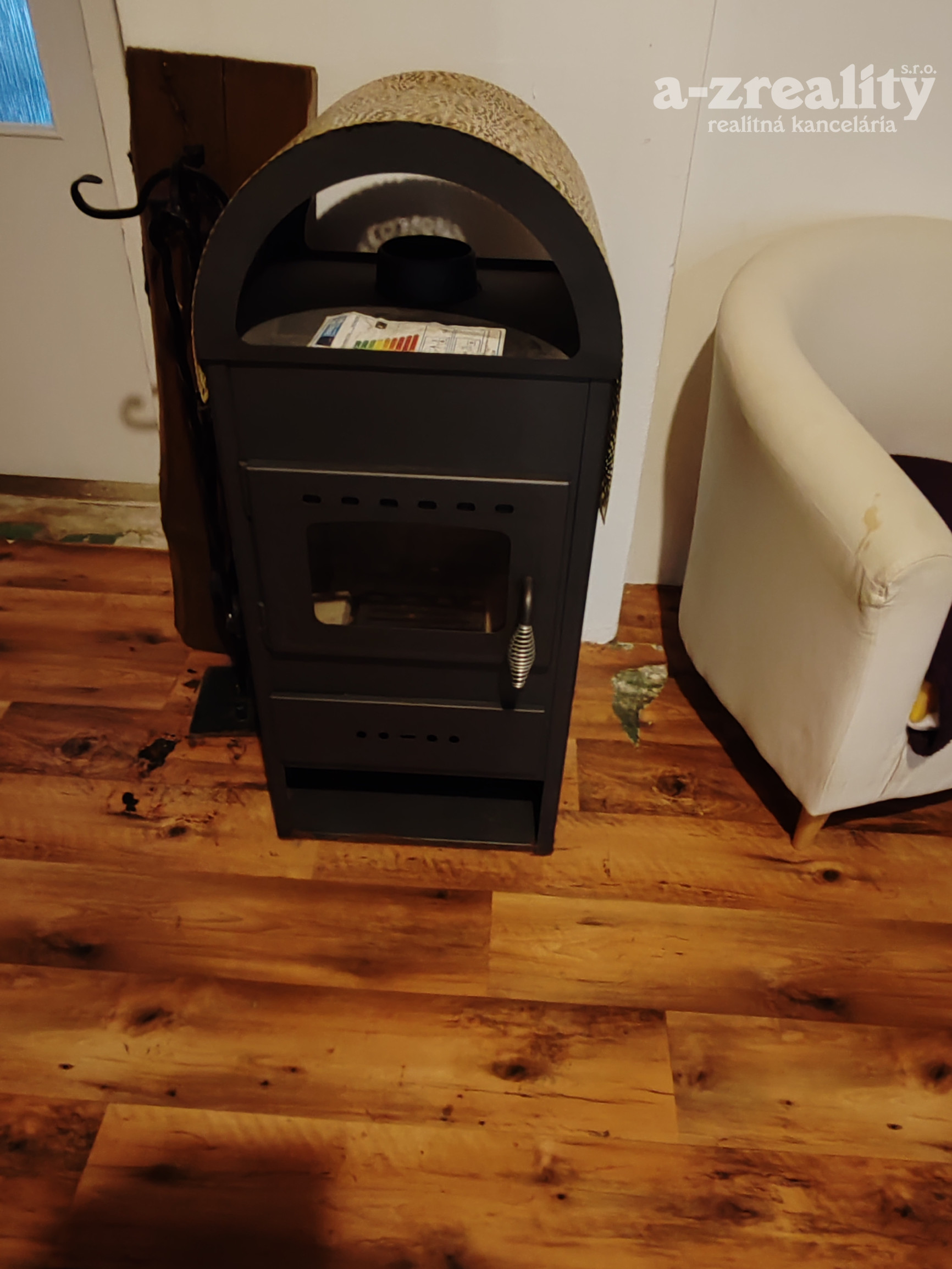 K dispozícii sú 2 komíny, možnosť kúrenia aj tuhým palivom (kachle v jedálni), kúrenie v dome zabezpečuje plynový kotol Immergas napojený na nové radiátory, ohrev vody pomocou bojlera.
