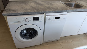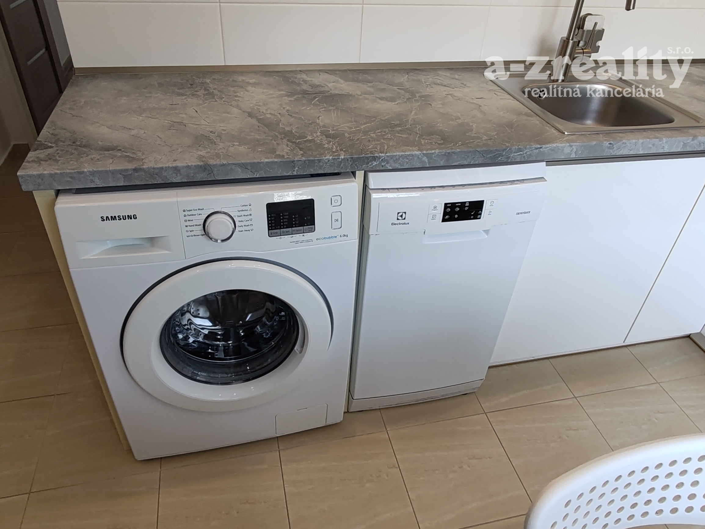 Byt je zariadený el. spotrebičmi (práčka, chladnička s mrazničkou, el. rúra, umývačka riadu, digestor, plynová varná doska), ako aj nábytkom na fotkách!