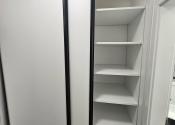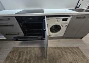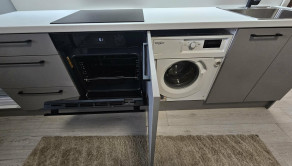 Byt je zariadený el. spotrebičmi: zabudovaná práčka, chladnička s mrazničkou, elektrická rúra, elektrická varná doska a mikrovlnka.