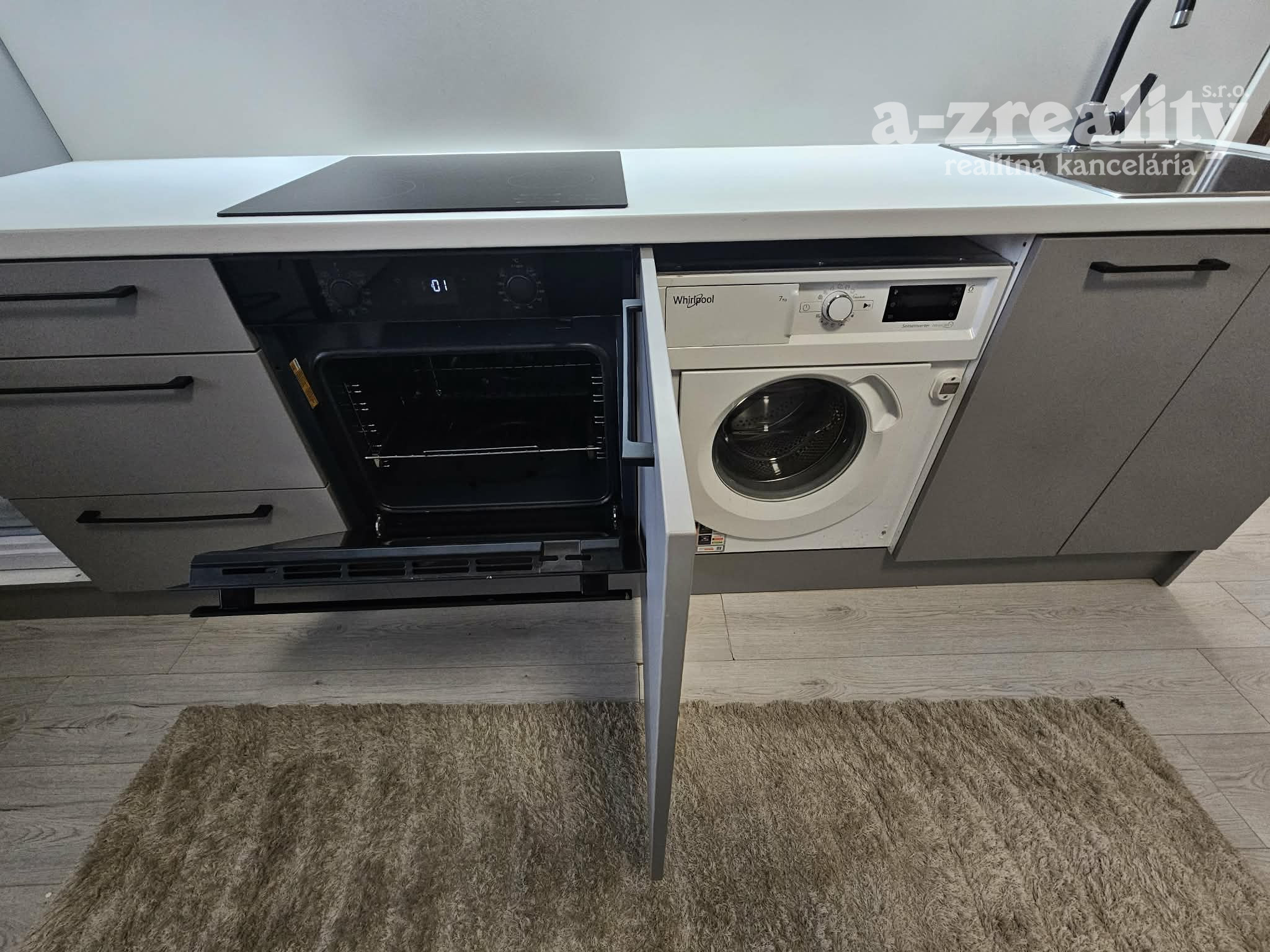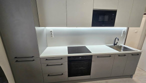 - na mieru vstavaná kuchynská linka s drezom a spotrebičmi,